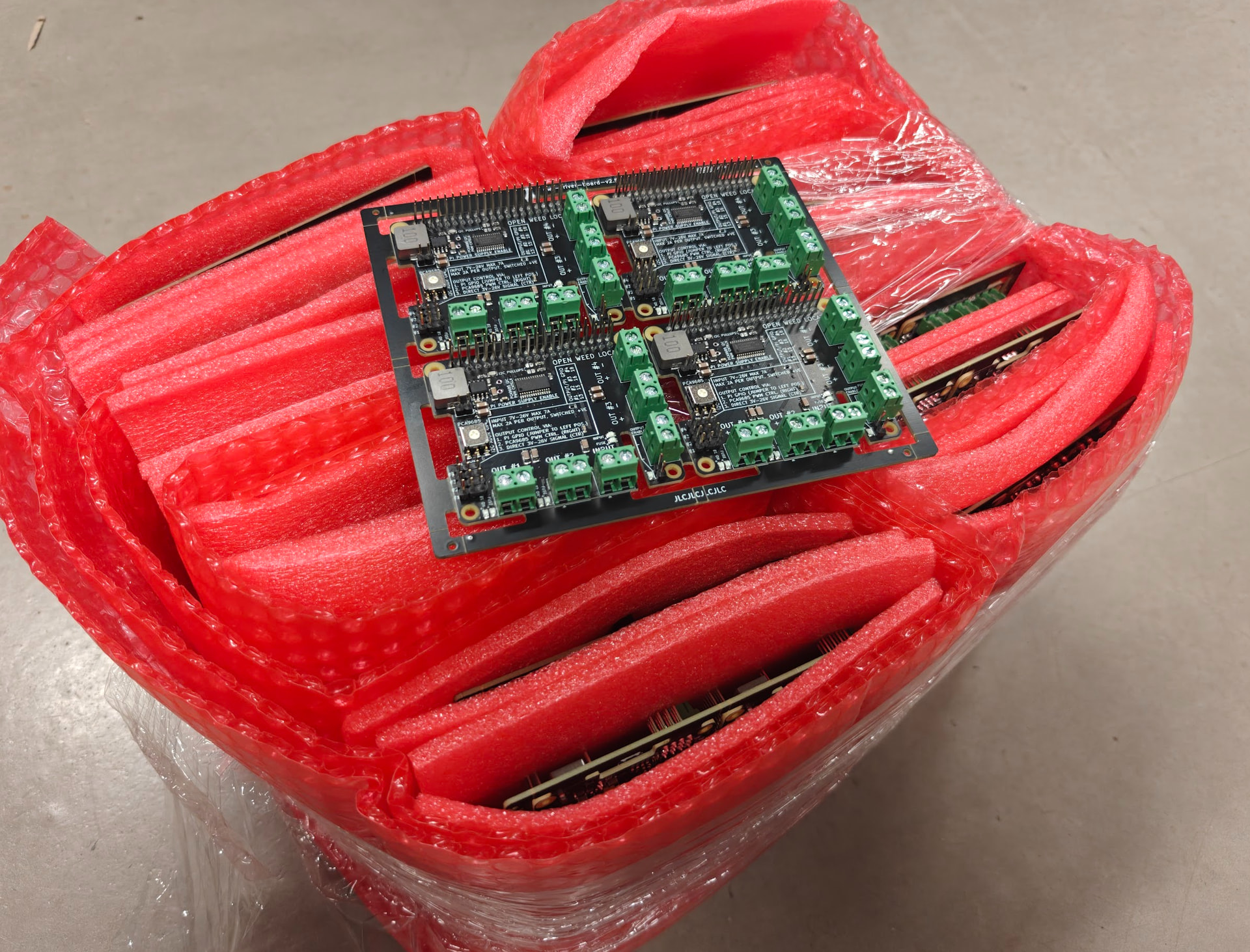 These boards are version v2.5 and v1.1 respectively - they are functionally the same as the previous version, but a discharge resistor has been added across each output to remove the ‘ghost voltages’ observed when outputs are off. Outputs will now measure <10mV when switched off.
